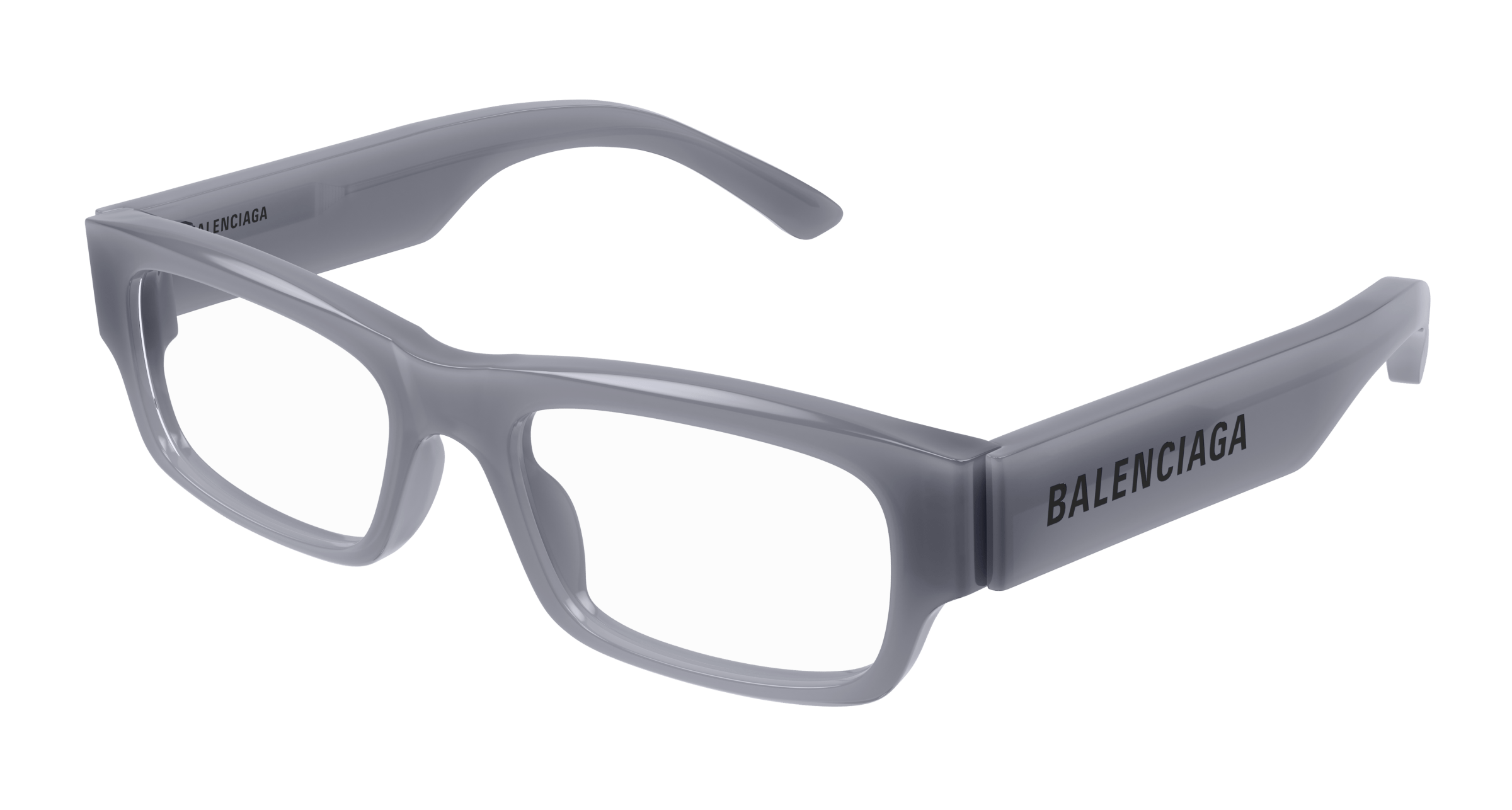 A NEW STATEMENT CONCEPT FEATURING A MAXI BALENCIAGA LETTERING LOGO. LOGO IS OBTAINED THROUGH AN EXTREMELY REFINED PROCESS NAMED “LAPPING”, RESULTING IN SMOOTH SURFACES WITH NO STEPS OR GAP BETWEEN LOGO AND TEMPLES. THANKS TO THE SMALL BEVEL ON THE TEMPLES A PERFECT MATCH WITH THE FRONT IS REACHED IN THE END PIECE AREA.