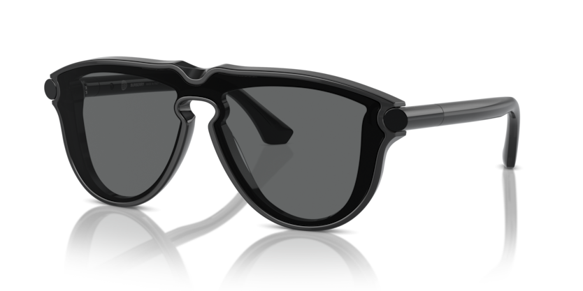 Pilot-shaped sunglasses with a mask effect thanks to the singular lens and tubular temples that feature a metal plaque on each one.