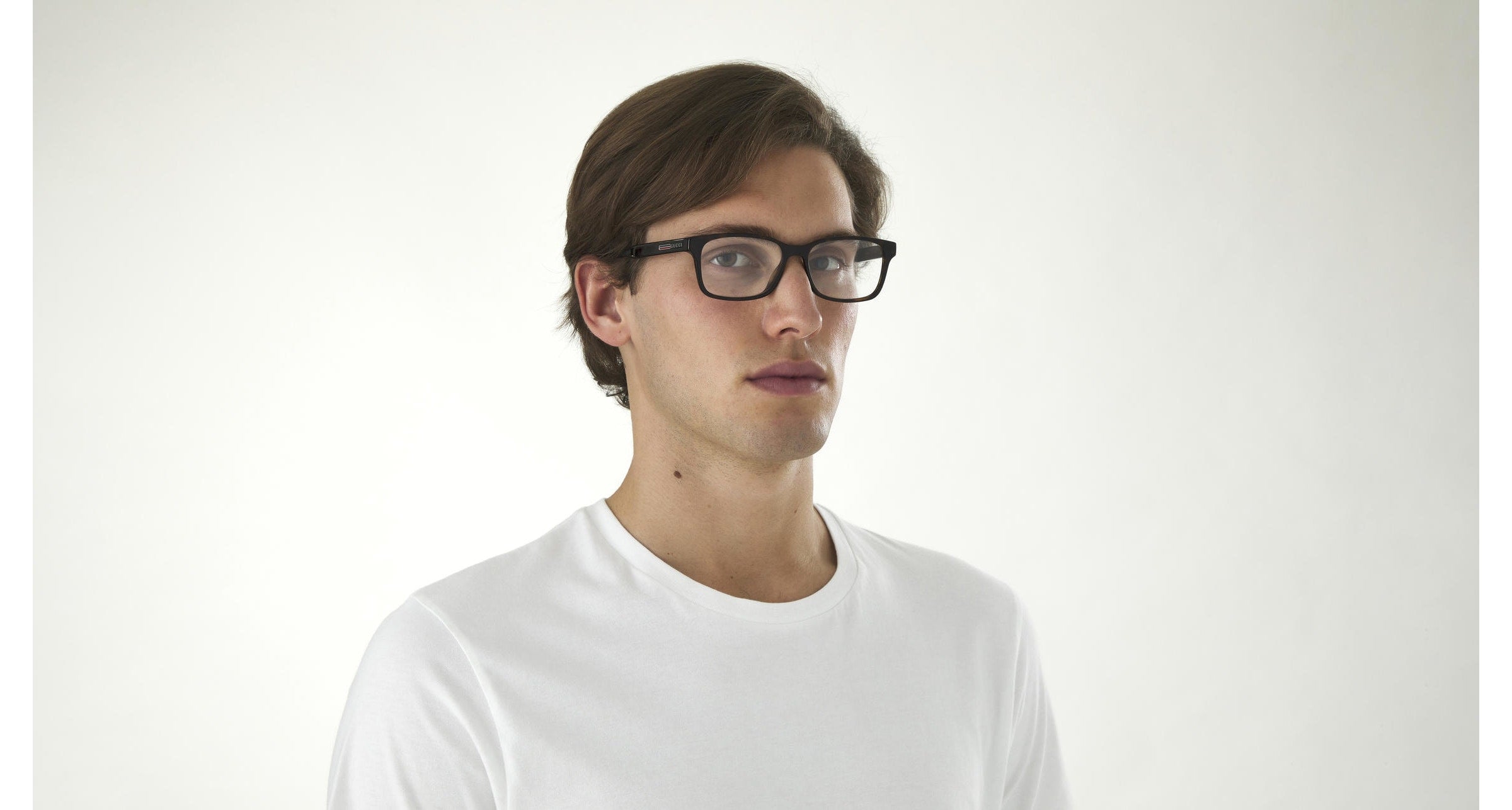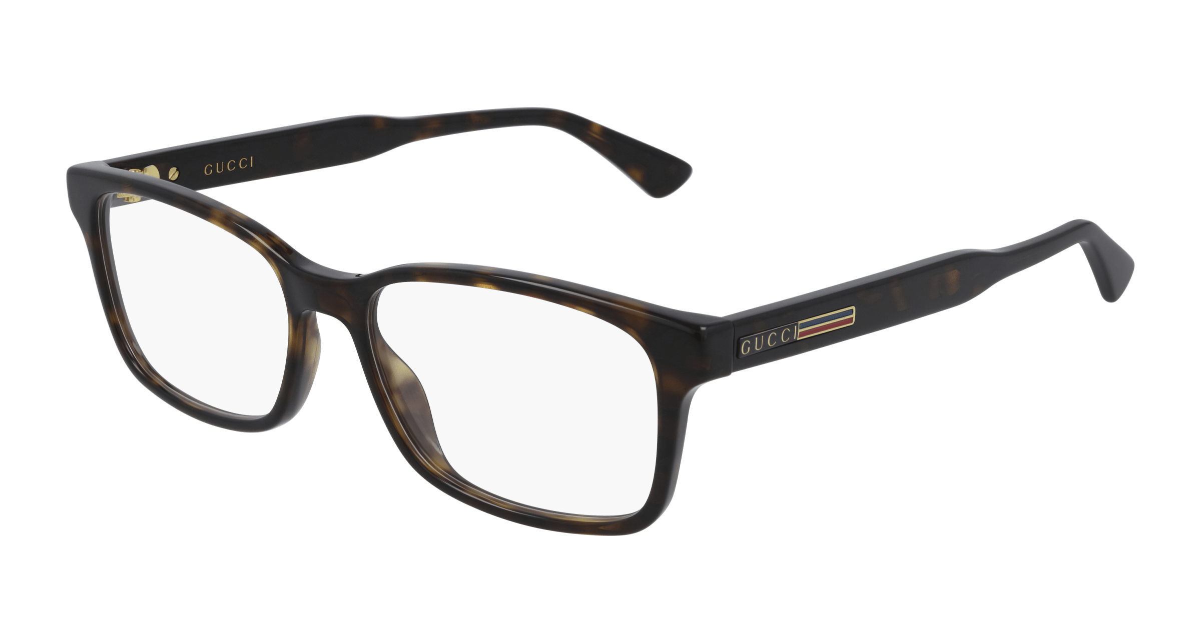 The concept is conceived for an everyday look and is embellished by the iconic and well known Gucci web. Masculine rectangular shape in acetate embellished with a web decoration on a metal colored plate. Gucci lettering logo on temples enriched by a web decorated metal plaque.
