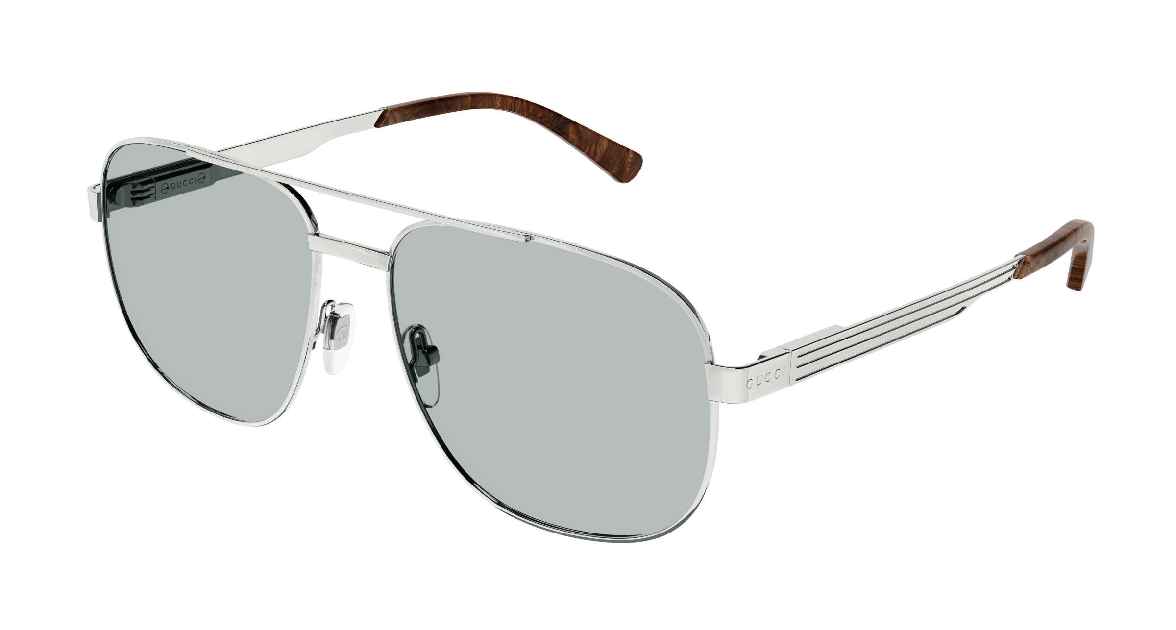 A 90s vintage twist characterizes this full metal caravan shape with web detail on the temples. The style comes with two skus with or without enamel which give to the style a strong brand recognizability. The style is characterized by exclusive Gucci patented Flex hinge.