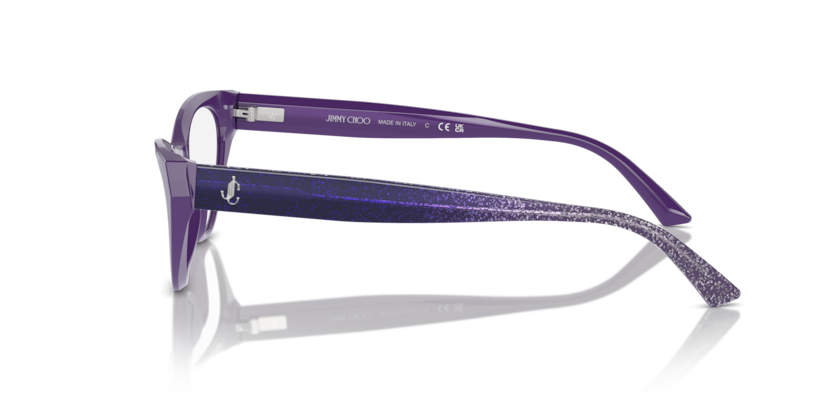 Sculpted from faceted acetate, these striking cat eye opticals are detailed with a laser-engraved custom hinge and sparkling glitter gradient at the temples.