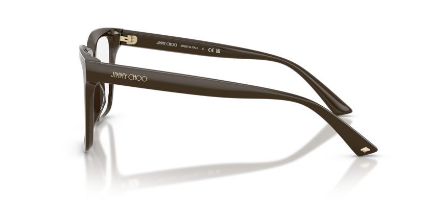 Oversized frames meet elegant temples with a hot print Jimmy Choo logo and a diamond metal stud on each temple tip.