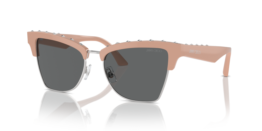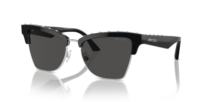 Diamond-shaped studs adorn the brow and temple of this bold butterfly silhouette, detailed with custom nosepads and laser-engraved hinge.